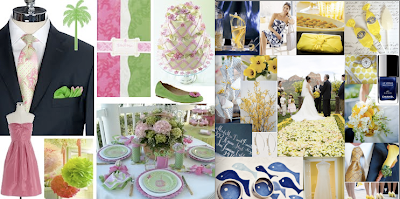 Very out of the ordinary for me. Again I like how the yellow really pops out. It just looks so great with the turquoise. Then the guys could wear a light grey suit which is MK's second choice.